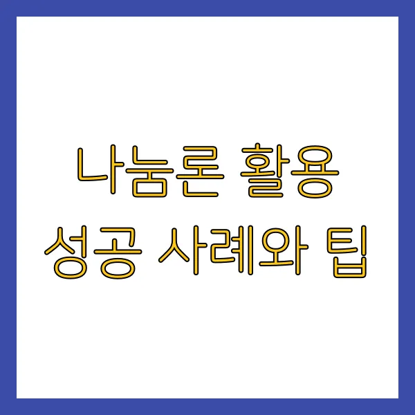 나눔론은 단순한 대출 상품을 넘어, 개인의 꿈을 현실로 만들어주는 든든한 지원 시스템입니다. 제시된 성공 사례와 활용 팁들을 참고하여 나눔론을 통해 여러분의 꿈을 향해 힘차게 나아가시길 바랍니다! 더욱 풍요롭고 행복한 미래를 향해 나눔론과 함께 힘찬 발걸음을 내딛어 보세요!