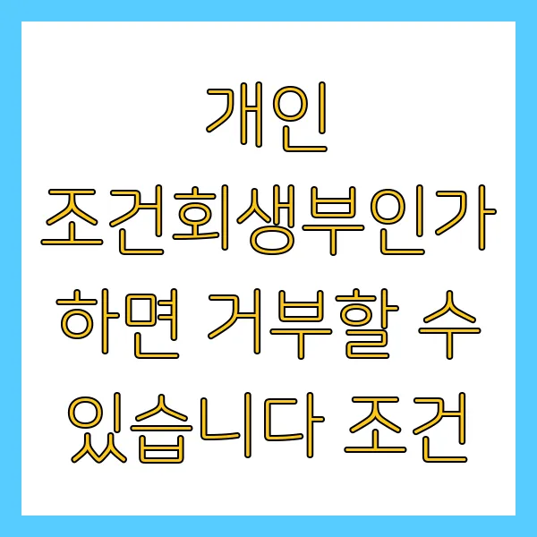 개인회생 절정의 순간, 조건부인가를 받았다고 해서 안심할 수는 없습니다. 마치 결승선을 코앞에 두고 넘어질 수도 있는 마라톤처럼 말이죠! 조건부인가는 법원이 채무자에게 “좋아, 회생 계획은 기본적으로 인정해 줄게. 하지만 몇 가지 조건을 충족해야 최종 인가를 내줄 거야”라고 말하는 것과 같습니다. 이 조건들을 제대로 이행하지 못하면? 안타깝게도 조건부인가는 거부될 수 있고, 회생의 꿈은 물거품이 될 수도 있습니다. 그렇다면 어떤 이유로 조건부인가가 거부될 수 있을까요? 지금부터 그 핵심적인 이유들을 낱낱이 파헤쳐 보겠습니다.