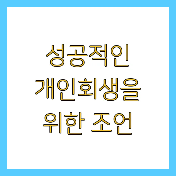 개인회생 절차는 복잡하고 어려울 수 있지만, 철저한 준비와 꾸준한 노력을 통해 재정적 안정을 되찾을 수 있을 것입니다.