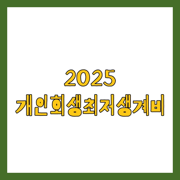 개인회생 은 재정적 어려움에 처한 채무자에게 재기의 기회를 제공하는 제도 입니다. 2025년 개인회생을 준비하신다면, 관련 자격 조건과 최저생계비 계산 방식 을 꼼꼼히 확인해야 합니다. 특히 매년 변동되는 최저생계비 는 변제 계획 수립에 매우 중요한 요소 이므로, 최신 정보를 정확히 파악 해야 합니다.